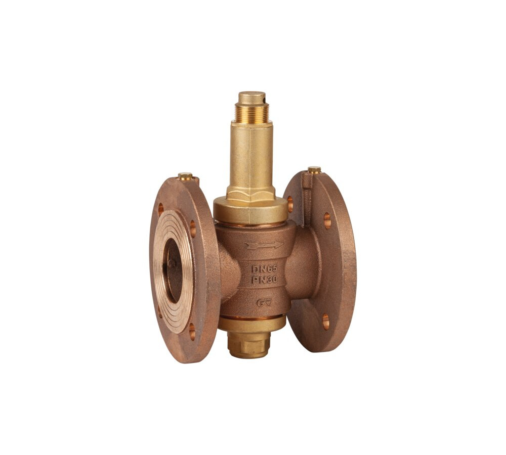 Flanged DIN PN 10/16. Bronze alloy body UNI EN 1982. Sealing inox. AISI 303. O’rings NBR. Maximum inlet pressure 30 bar. Maximum working temperature 80ºC. Outlet range: adjustable from 1,5 to 7 bar.